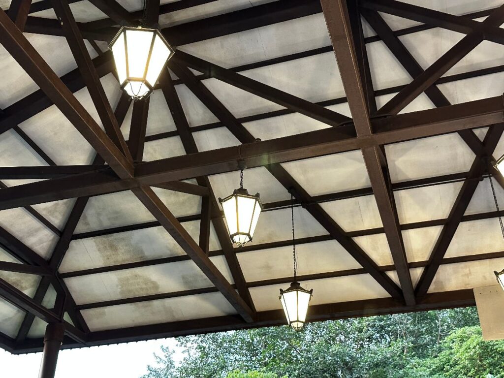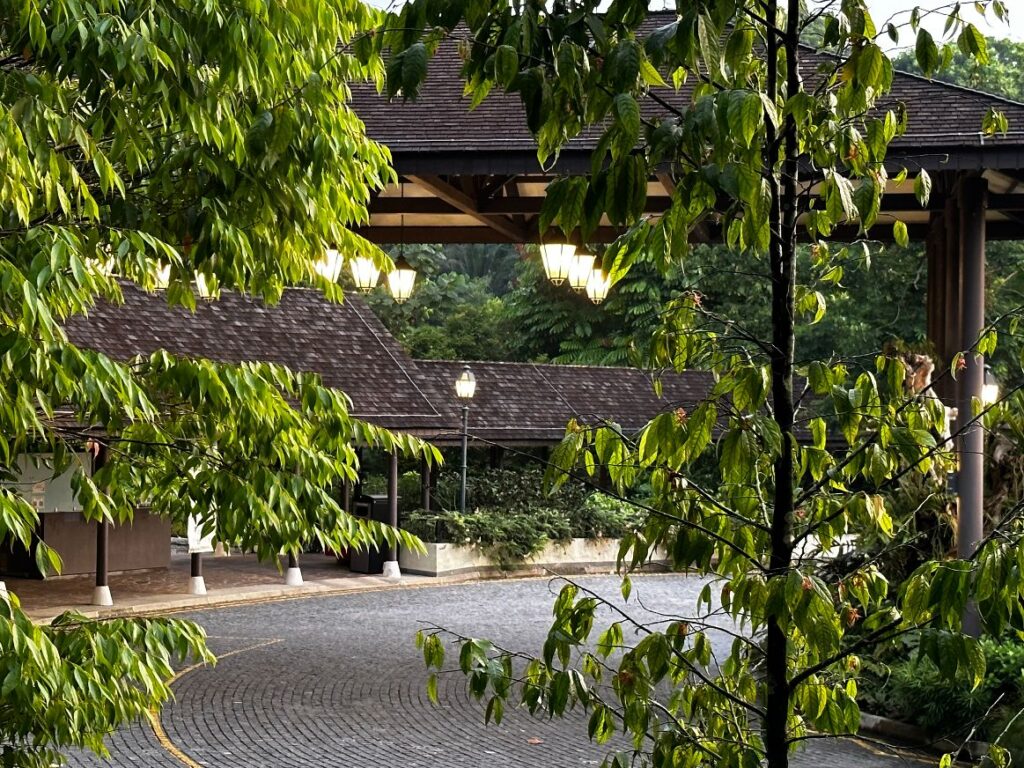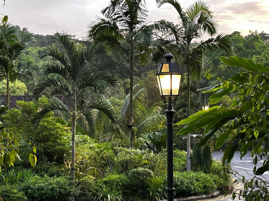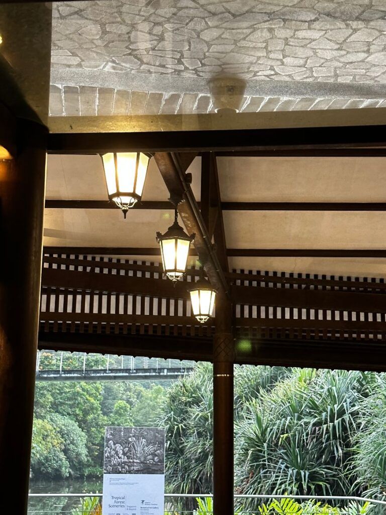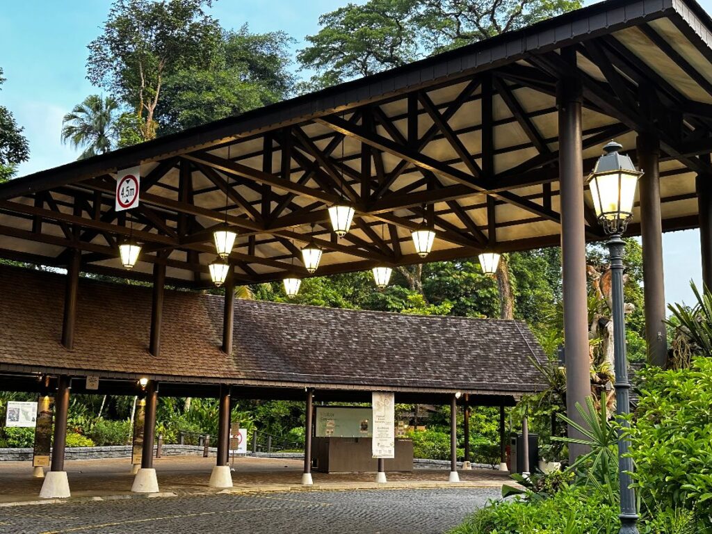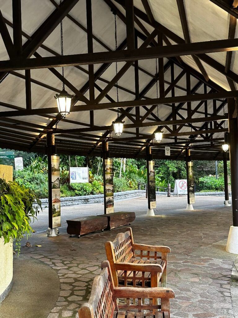 Entrée Tanglin Gate des jardins botaniques de Singapour. On voit une structure en bois avec des lanternes suspendues de style colonial, un panneau indiquant une hauteur maximale de 4,5 mètres et une végétation tropicale en arrière-plan. Au centre, un panneau d'information pour les visiteurs. À droite, une lanterne de jardin classique. Espace de détente à Singapour sous un toit avec une structure en bois décorée. Des lampes classiques en forme de lanternes sont suspendues au plafond et diffusent une lumière chaude. Entrée Tanglin Gate des jardins botaniques de Singapour. On voit une structure en bois avec des lanternes suspendues de style colonial, un panneau indiquant une hauteur maximale de 4,5 mètres et une végétation tropicale en arrière-plan. Au centre, un panneau d'information pour les visiteurs. À droite, une lanterne de jardin classique. Espace de détente à Singapour sous un toit avec une structure en bois décorée. Des lampes classiques en forme de lanternes sont suspendues au plafond et diffusent une lumière chaude. Un espace détente à Singapour, sous un auvent orné d'une structure en bois ornée. Des lanternes classiques sont suspendues au plafond, diffusant une lumière chaleureuse. Singapur Singapur